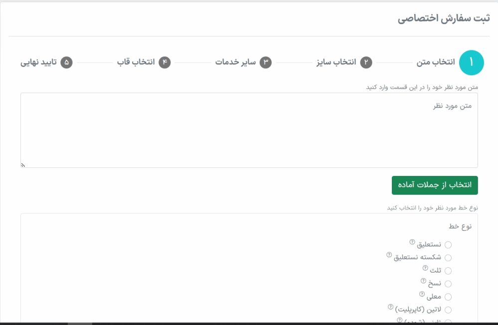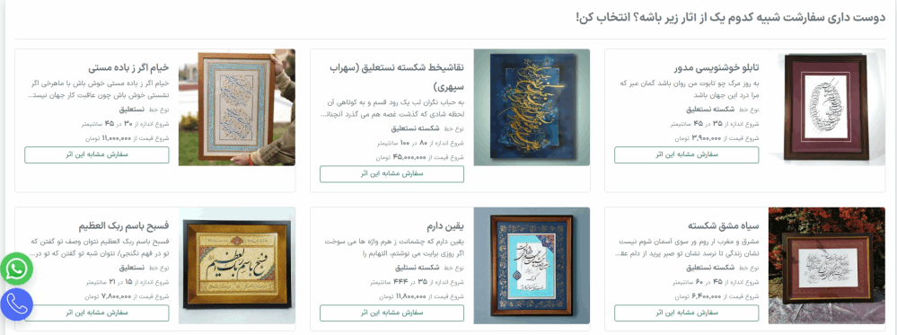 در این حالت یک سری از آثاری که قبلا توسط اساتید خلق شده ، نمایش داده می شود و مخاطب میتواند متن دلخواه خود را شبیه آثاری که قبلا سفارش داده شده، سفارش دهد.